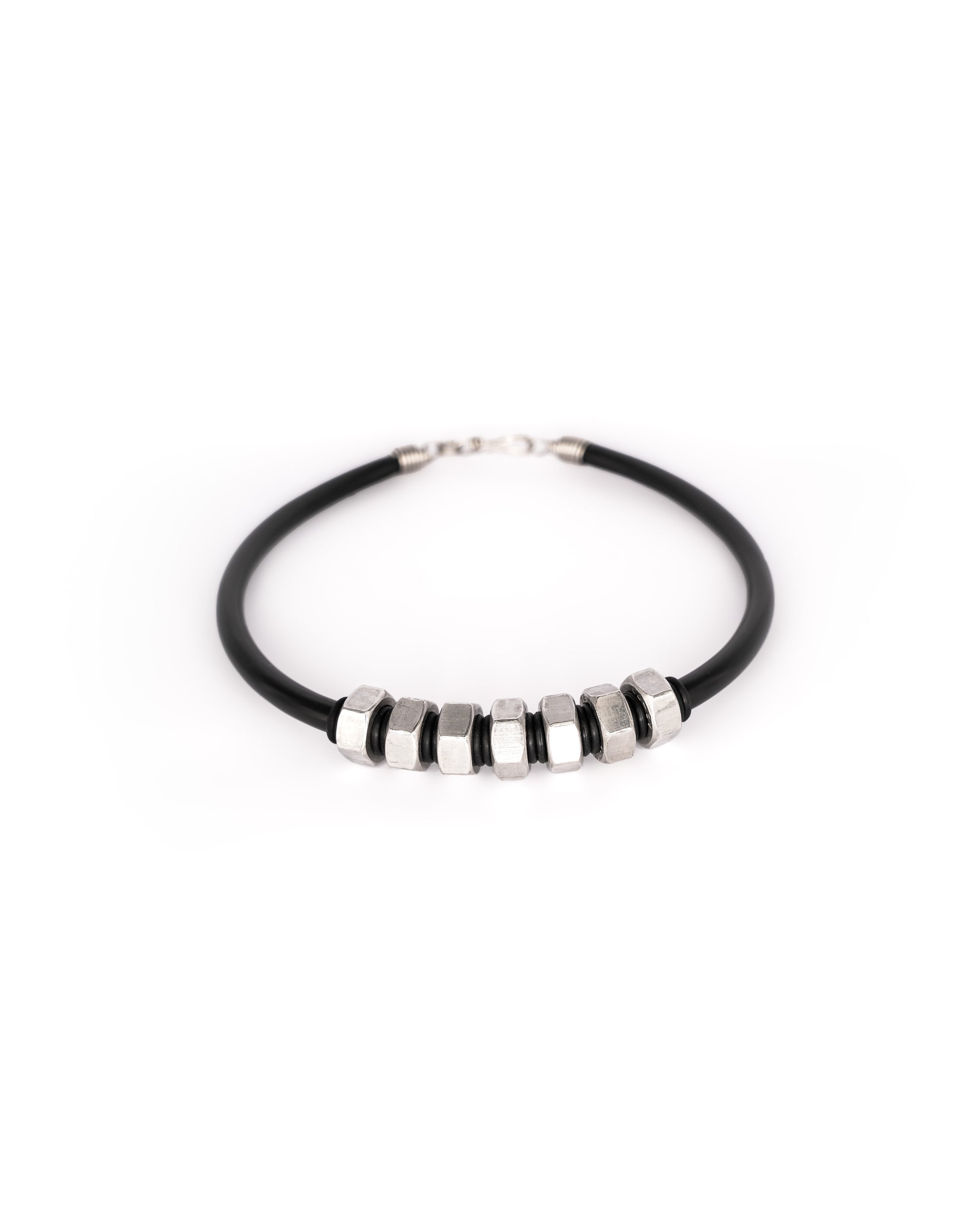 From Mauna Khea’s exclusive collection, this bold necklace features a sleek black tube strung with carefully arranged stainless steel beads, creating a striking, minimalist design. The combination of dark and metallic elements offers a modern, tribal-inspired aesthetic. Each necklace takes several days to handcraft, ensuring every bead and detail is perfectly placed for a one-of-a-kind look.